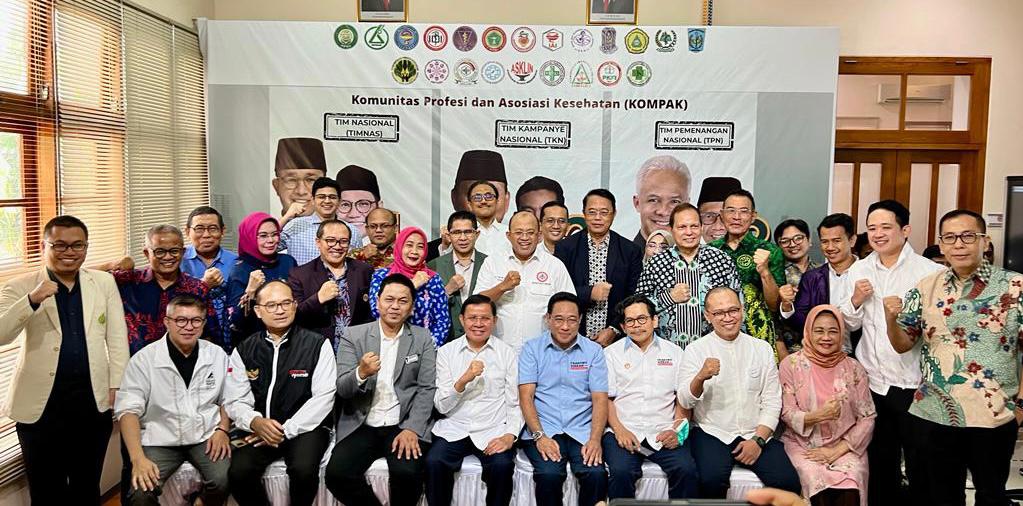 destinasiaNews – Komunitas yang tergabung dalam Profesi dan Asosiasi Kesehatan (KOMPAK) Indonesia, terdiri dari 19 komunitas dan asosiasi profesi kesehatan, mengadakan Dialog Nasional mengenai Pembangunan Kesehatan Indonesia dengan Tim Pemenangan para Calon Presiden (Capres) dari Anies – Muhaimin (01), Prabowo Gibran (02), dan Ganjar – Mahfud (03), berlangsung di Gedung DR R Soeharto Pengurus Besar Ikatan Dokter Indonesia (PB IDI) awal pekan ini.