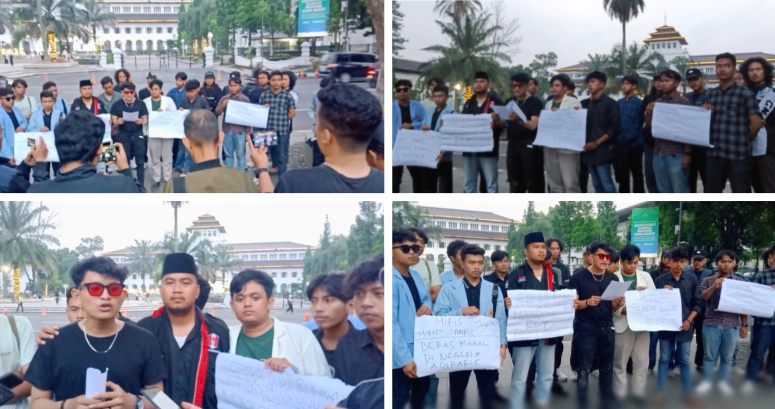 Kordinator perwakilan dari Federasi Mahasiswa Provinsi Jawa Barat, Arya Bimantara, Bani Rizki, dan Ahmad Sidik secara kompak menerangkan, kenaikan harga pangan akhir-akhir ini sangat massif. Pascapemilu 2024, tren kenaikan harga bukan hanya terjadi pada BBM, listrik, dan tarif tol. Tapi juga harga beras yang menjadi bahan pokok mendasar masyarakat Indonesia.
