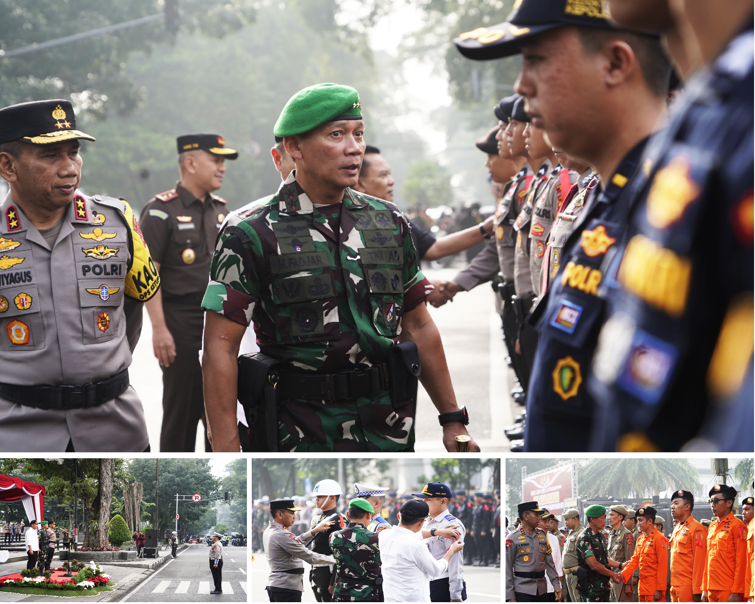 destinasiaNews – Pangdam III/Slw Mayjen TNI Mohammad Fadjar, MPICT, didampingi PJ. Gubernur Jabar Bey Triadi Machmudin, S.E., M.T., dan Kapolda Jabar Irjen Pol Dr. Akhmad Wiyagus, S.I.K., M.Si., M.M., bertindak sebagai Pimpinan Apel Gelar Pasukan Operasi Kepolisian Terpusat “Ketupat Lodaya-2024” dalam rangka Pengamanan Idul Fitri 1445 H Tahun 2024 di Jalan Diponegoro Kota Bandung, Rabu, (03/04/2024).