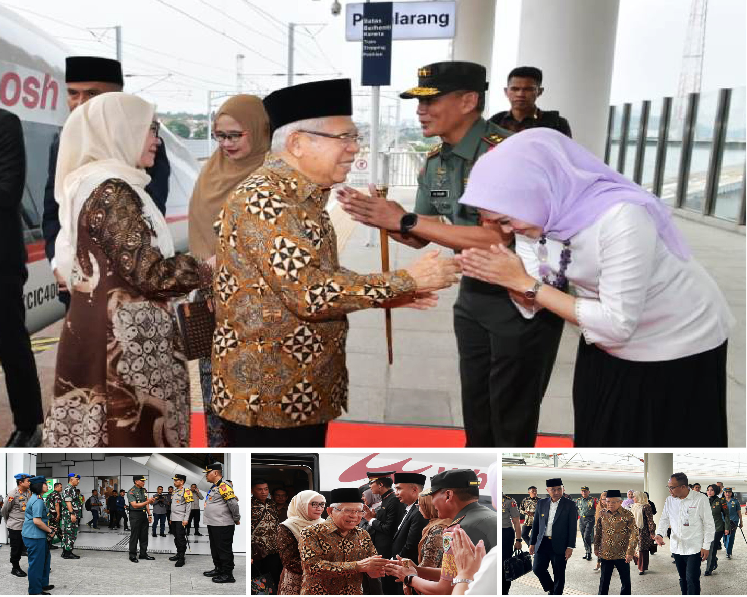 Kedatangan Wakil Presiden RI Prof. Dr. K.H. Ma’ruf Amin didampingi ibu Wuri Ma’ruf Amin di Stasiun KCIC Padalarang Kp. Curug Agung Ds. Kertajaya Kec. Padalarang Kab. Bandung Barat disambut PJ. Gubernur Jabar, Pangdam III/Slw dan Kapolda Jabar.