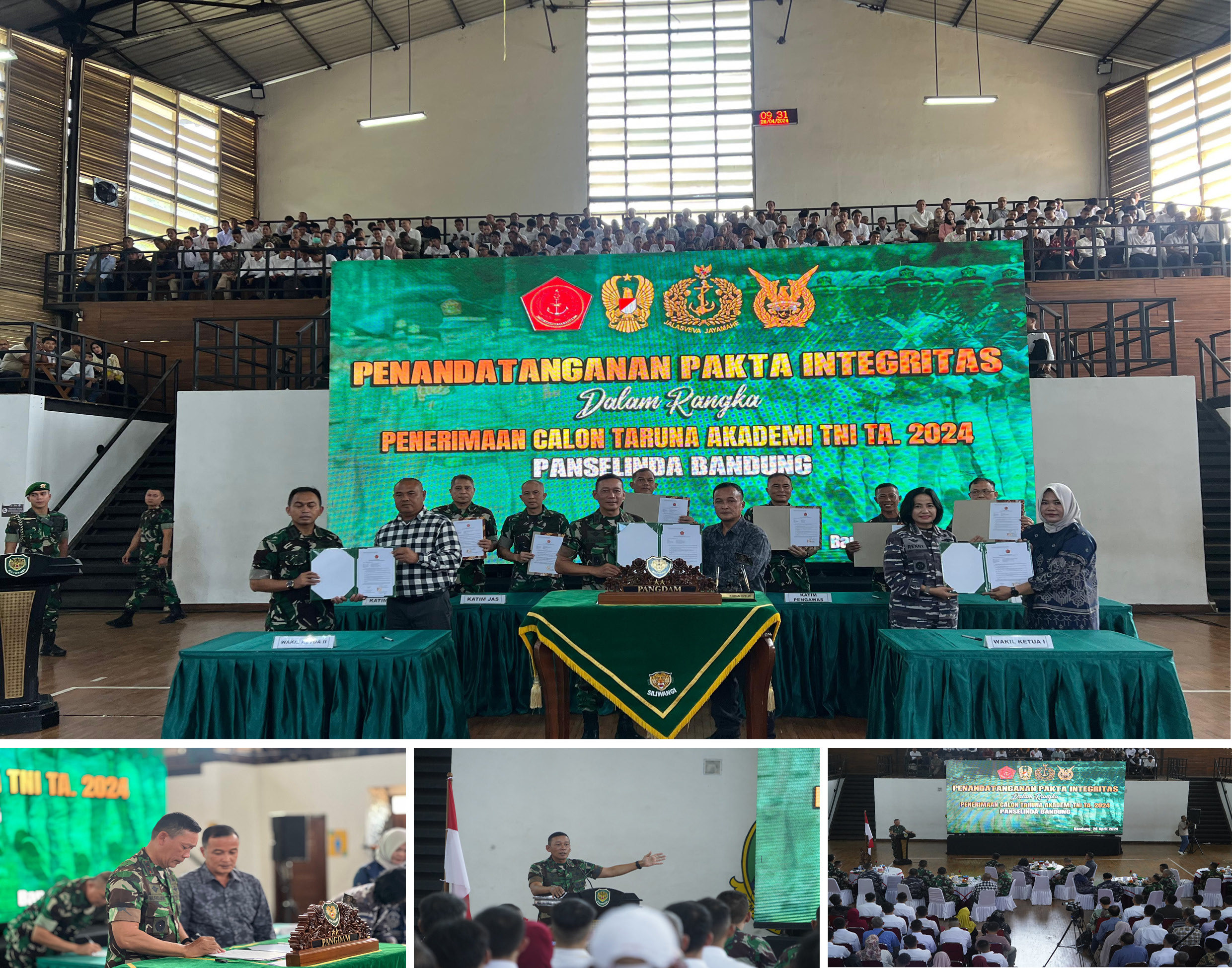 destinasiaNews – Pangdam III/Siliwangi Mayjen TNI Mohammad Fadjar, MPICT., memimpin acara Penandatanganan Pakta Integritas Calon Taruna (Catar) Akademi TNI Tahun 2024 Panselinda Bandung, bertempat di GOR Saparua Jalan Banda No. 28 Bandung, Minggu (28/04/2024).