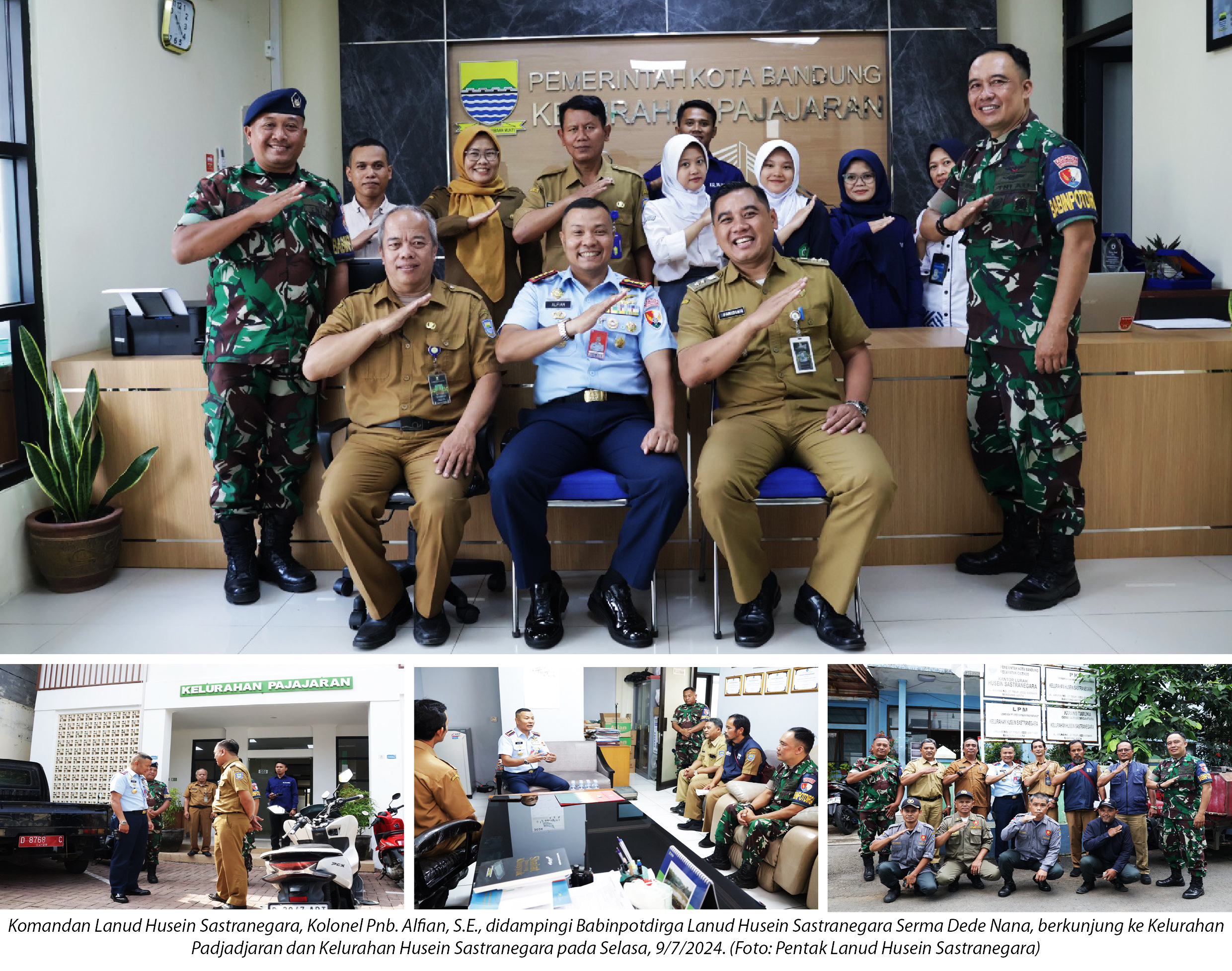 Guna membangun sinergi dengan Forkopimcam, Komandan Lanud Husein Sastranegara, Kolonel Pnb. Alfian, S.E., didampingi Babinpotdirga Lanud Husein Sastranegara Serma Dede Nana, berkunjung ke Kelurahan Padjajaran dan Kelurahan Husein Sastranegara pada Selasa (9/7/2024). Kedatangan Danlanud beserta Babinpotdirga disambut oleh Lurah Bapak Paridin beserta staf di ruang kerjanya.