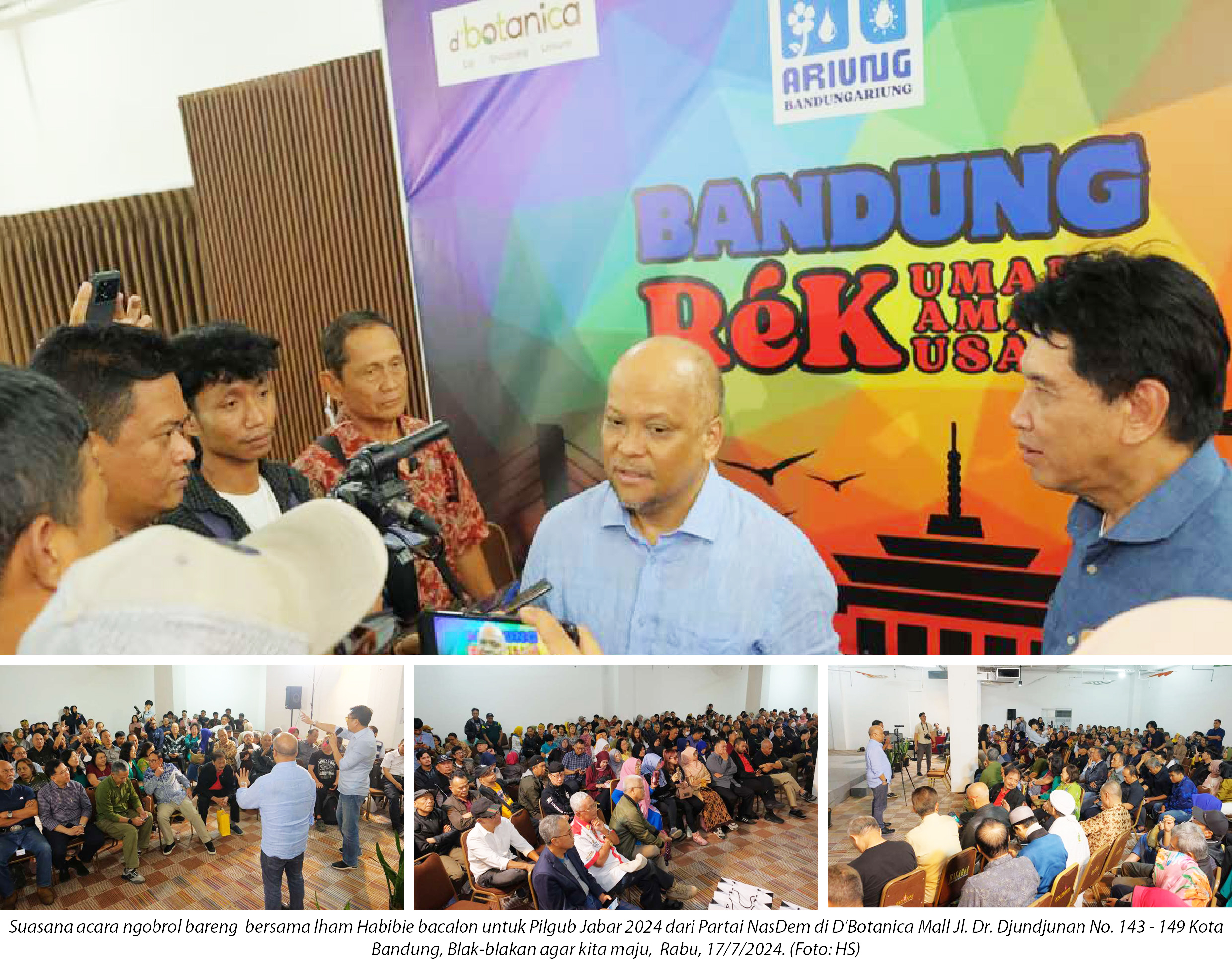 Kali ini, Rabu, 17 Juli 2024, di D’Botanica Mall (K9 Room Lantai GF) Jl. Dr. Djundjunan No. 143 – 149 Bandung, lengkapnya sang bacalon di Pilgub Jabar 2024 Dr. Ing H Ilham Habibie, Dipl. Ing, MBA, kelahiran Aachen, Jerman, 13  Mei 1963 yang akrab disapa Kang Ilham. Di sini, ia sempat mendapat julukan dari audiens sebagai kuda hitam pada Pilgub Jabar 2024. Di D’Botanica Mall yang diserbu lebih dari 200 pengunjung yang bahkan hadir di antaranya dari Bogor, Indramayu, serta daerah lainnya, ia membedah tema ‘Jabar Berteknologi sebagai Ujung Tombak Indonesia Emas’.