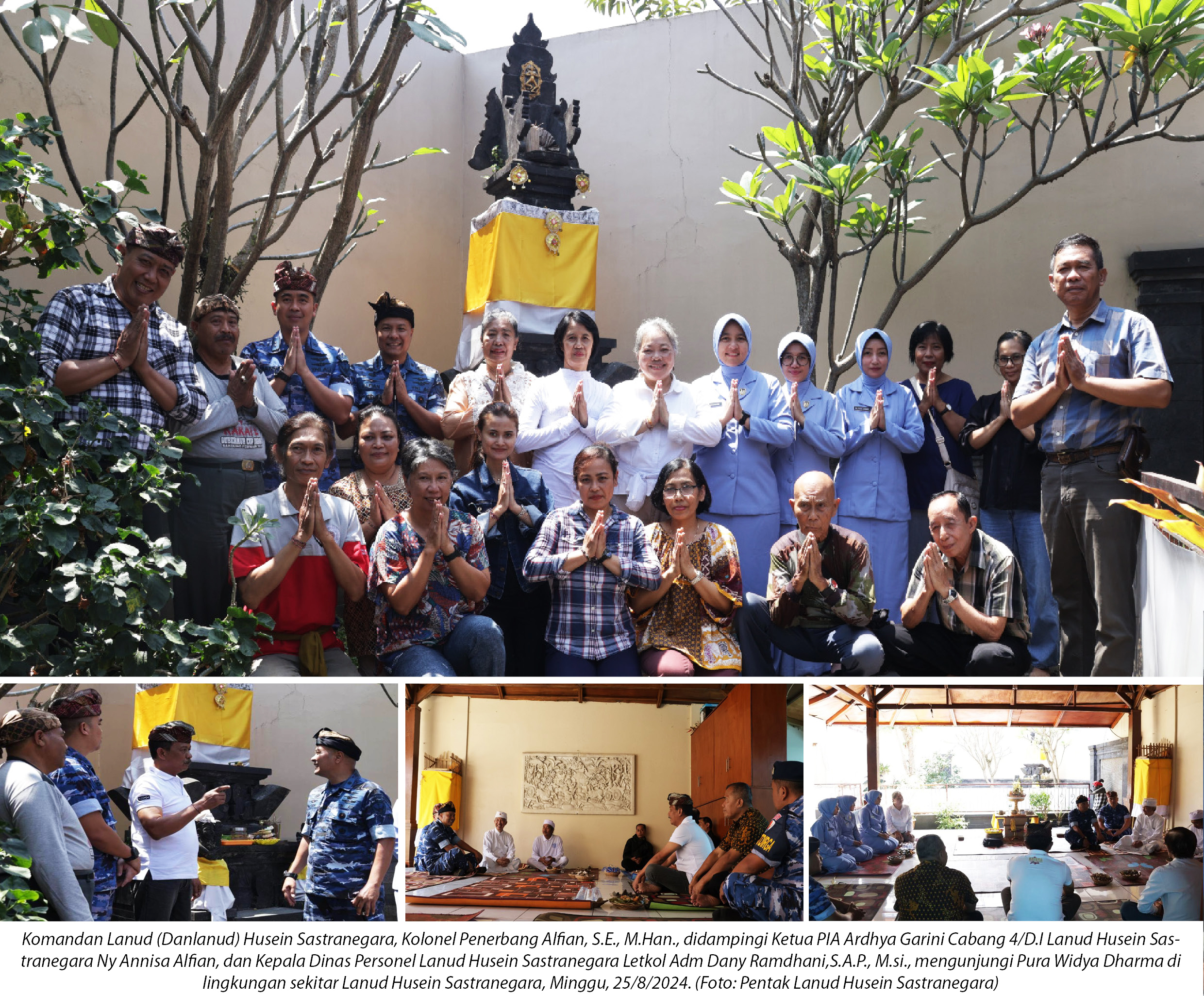 destinasiaNews – Komandan Lanud (Danlanud) Husein Sastranegara, Kolonel Penerbang Alfian, S.E., M.Han., didampingi Ketua PIA Ardhya Garini Cabang 4/D.I Lanud Husein Sastranegara Ny Annisa Alfian, dan Kepala Dinas Personel Lanud Husein Sastranegara Letkol Adm Dany Ramdhani,S.A.P., M.si., menyempatkan diri untuk mengunjungi Pura Widya Dharma dalam rangka mempererat hubungan dengan umat Hindu di lingkungan sekitar Lanud Husein Sastranegara, Minggu (25/8/2024).