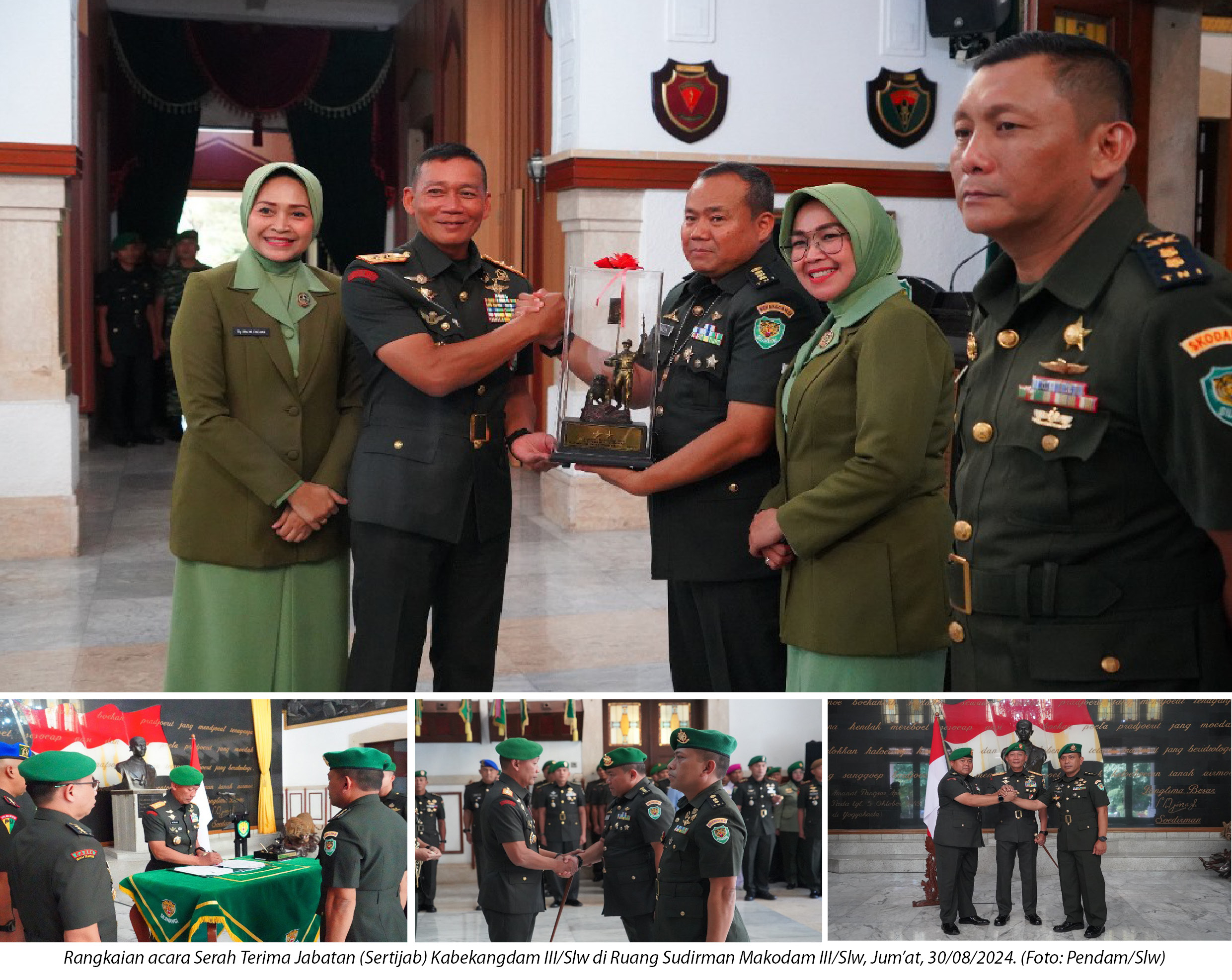destinasiaNews – Pangdam III/Siliwangi Mayjen TNI Mohammad Fadjar, MPICT., memimpin acara Serah Terima Jabatan (Sertijab) Kabekangdam III/Slw di Ruang Sudirman Makodam III/Slw, Jum’at (30/08/2024).
