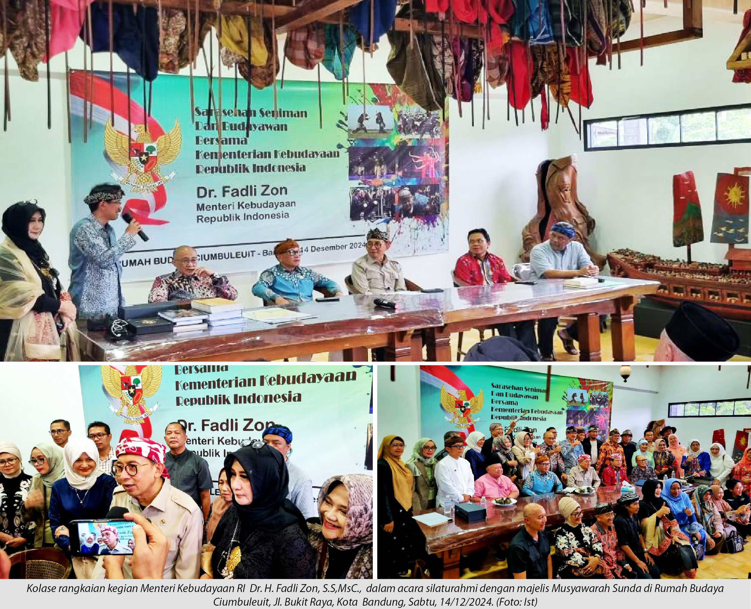 destinasiaNews – Menteri Kebudayaan RI Dr. H.Fadli Zon,S.S,MsC dalam rangkaian kegiannya di Bandung Sabtu, 14 Desember 2024 di Rumah Budaya Ciumbuleuit Jl. Bukit Raya – Bandung menerima silaturahmi Pinisepuh, Dewan Pakar Badan Pekerja Majelis dan para budayawan Sunda jejaring Musyawarah Sunda, pertemuan ini hasil komunikasi informal dan formal Pinisepuh Pamangku Sunda dan Badan Pekerja MMS.