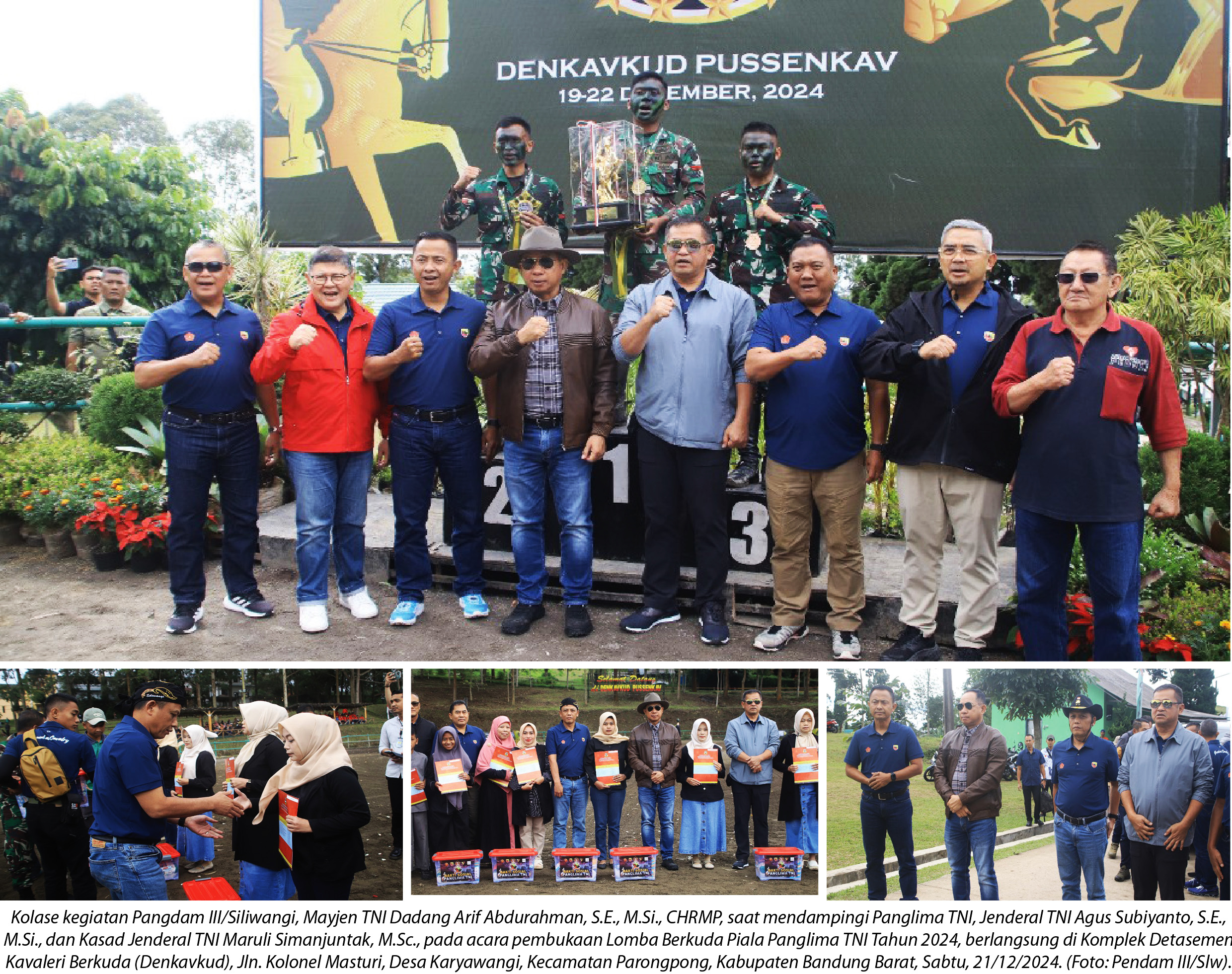 destinasiaNews – Pangdam III/Siliwangi, Mayjen TNI Dadang Arif Abdurahman, S.E., M.Si., CHRMP, mendampingi Panglima TNI, Jenderal TNI Agus Subiyanto, S.E., M.Si., dan Kasad Jenderal TNI Maruli Simanjuntak, M.Sc., membuka Lomba Berkuda Piala Panglima TNI Tahun 2024 yang berlangsung di Komplek Detasemen Kavaleri Berkuda (Denkavkud), Jln. Kolonel Masturi, Desa Karyawangi, Kecamatan Parongpong, Kabupaten Bandung Barat, Sabtu (21/12/2024).
