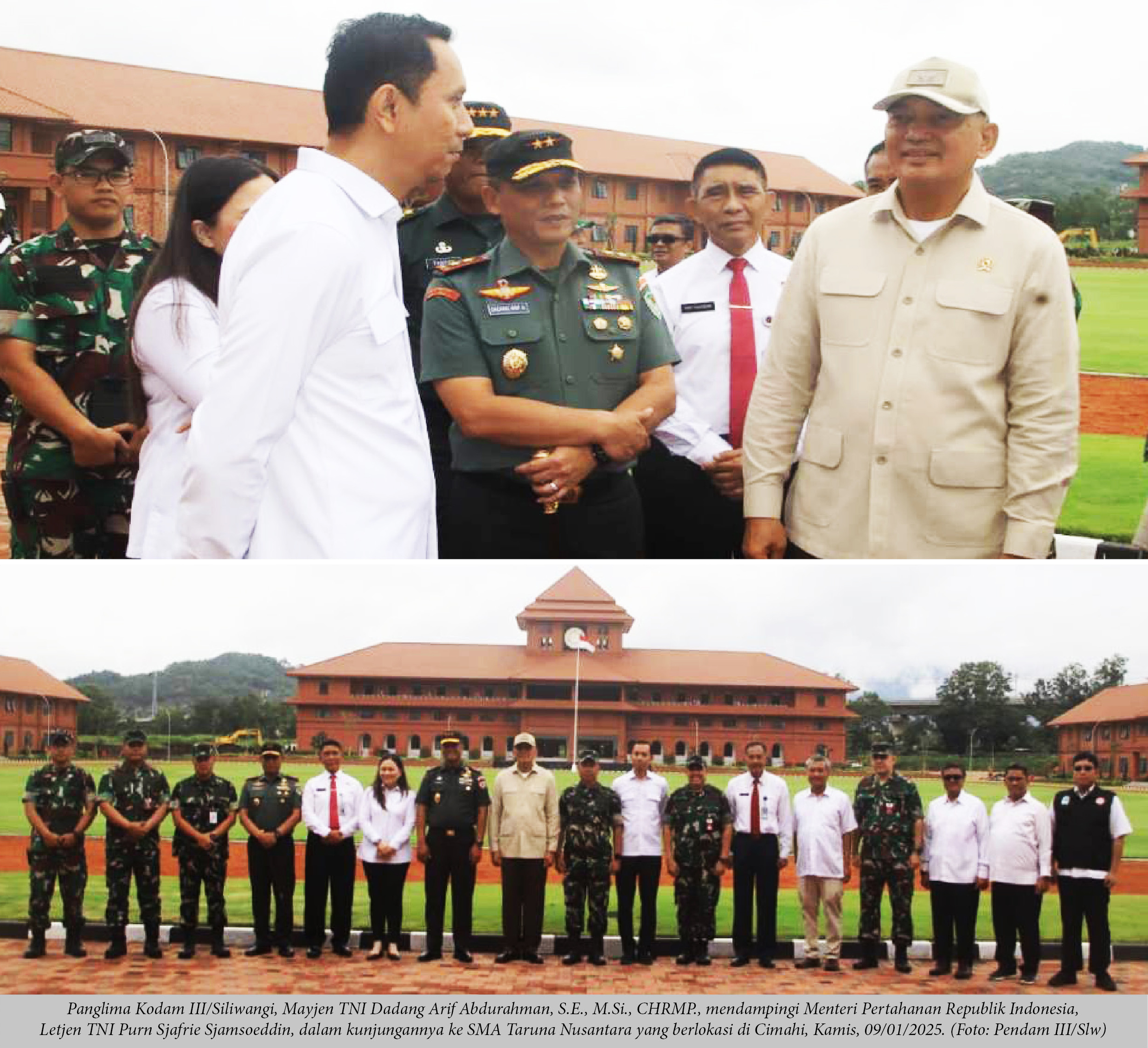 destinasiaNews – Panglima Kodam III/Siliwangi, Mayjen TNI Dadang Arif Abdurahman, S.E., M.Si., CHRMP., mendampingi Menteri Pertahanan Republik Indonesia, Letjen TNI Purn Sjafrie Sjamsoeddin, dalam kunjungan kerja ke wilayah Kodam III/Slw khususnya di Bandung dan Cimahi, Kamis (09/01/2025).