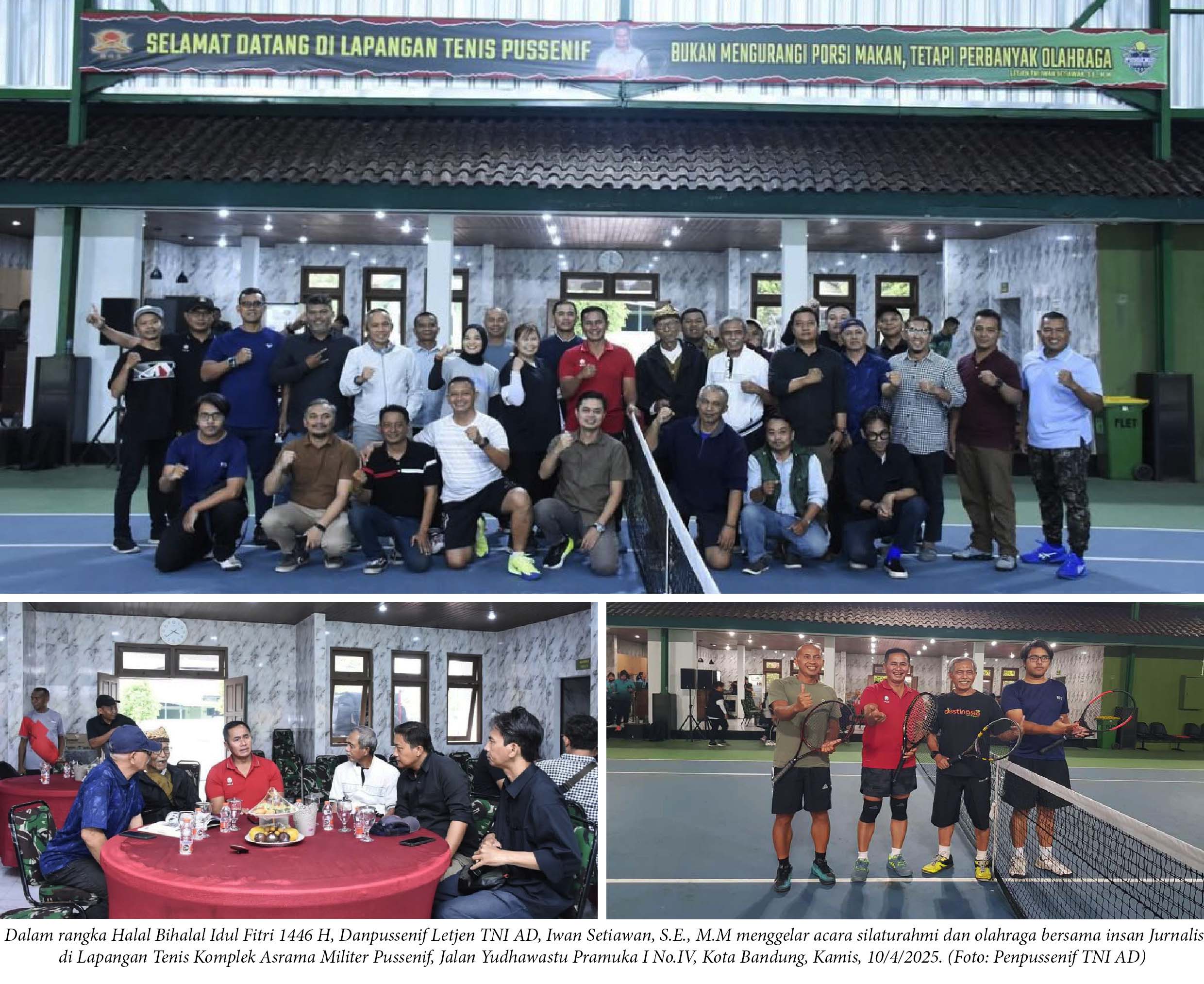 destinasiaNews – Komandan Pusat Kesenjataan Infanteri (Danpussenif) TNI AD, Letjen TNI Iwan Setiawan, S.E., M.M., menggelar acara silaturahmi dan olahraga bersama para insan jurnalis  di Lapangan Tenis Komplek Asrama Militer Pussenif, Jalan Yudhawastu Pramuka I No.IV, Kota Bandung, Kamis, 10/4/2025.