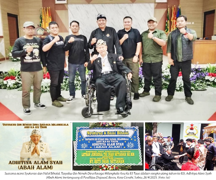 destinasiaNews – Dalam rangka acara Syukuran dan Halal Bihalal, Tasyakur Bin Nimah Dina Raraga Milangkala Anu Ka 83 Taun, Adhitiya Alam Syah (Abah Alam) berlangsung di Pusdikjas Disjasad, Baros, Kota Cimahi, Sabtu, 26/4/2025.