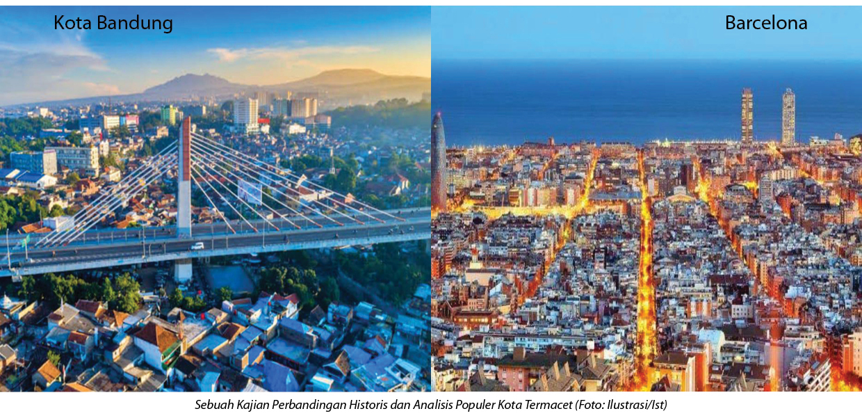 Perbandingan historis antara Kota Bandung sebagai salah satu kota termacet di Indonesia dan Barcelona yang masuk katagori kota dengan “kepadatan ekstrim”, bisa dilakukan dengan pendekatan ” Tinjauan Historis ” dan “Analisis Populer Multidimensi” mencakup aspek sejarah pertumbuhan kota, tata ruang, kebijakan transportasi, serta budaya mobilitas masyarakat.