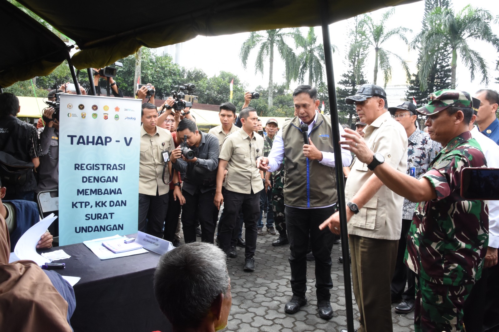 Menhan RI, Panglima TNI, dan rombongan meninjau langsung penyaluran bantuan beras SPHP kepada masyarakat penerima manfaat. Menhan RI menekankan pentingnya peran historis dan strategis Bulog dalam ketahanan pangan nasional. Ia juga mengingatkan bahwa Bulog lahir dari inisiatif TNI AD di masa lalu untuk mengatasi krisis pangan.
