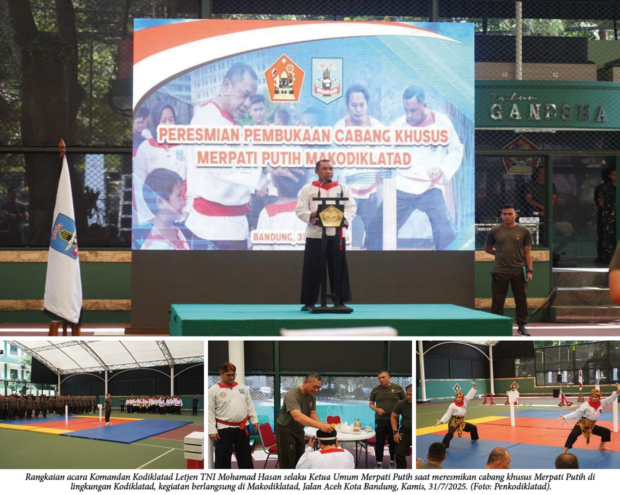 destinasiaNews – Dalam upaya meningkatkan kemampuan jasmani dan mental prajurit, Komandan Kodiklatad Letjen TNI Mohamad Hasan selaku Ketua Umum Merpati Putih secara resmi membuka cabang khusus Merpati Putih di lingkungan Kodiklatad, Kegiatan peresmian digelar di Makodiklatad. Kamis (31/7/2025)