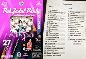 destinasiaNew — Sabtu malam (27/9/2025) menjadi momen istimewa bagi ratusan penggemar musik lawas di Kota Bandung. Grup musik legendaris Wachdach tampil penuh energi dalam konser bertajuk Pub Jadul Party and Classic Disco Live WACHDACH Part VII di Heritage Dago, Jalan Raya Golf Dago No. 78, Kota Bandung.