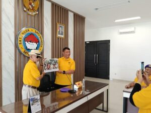 Penyerahan foto kenangan saat berkuliah dulu era 1980-an di Kampus IKIP Bandung (UPI). (Foto: Harri Safiari)